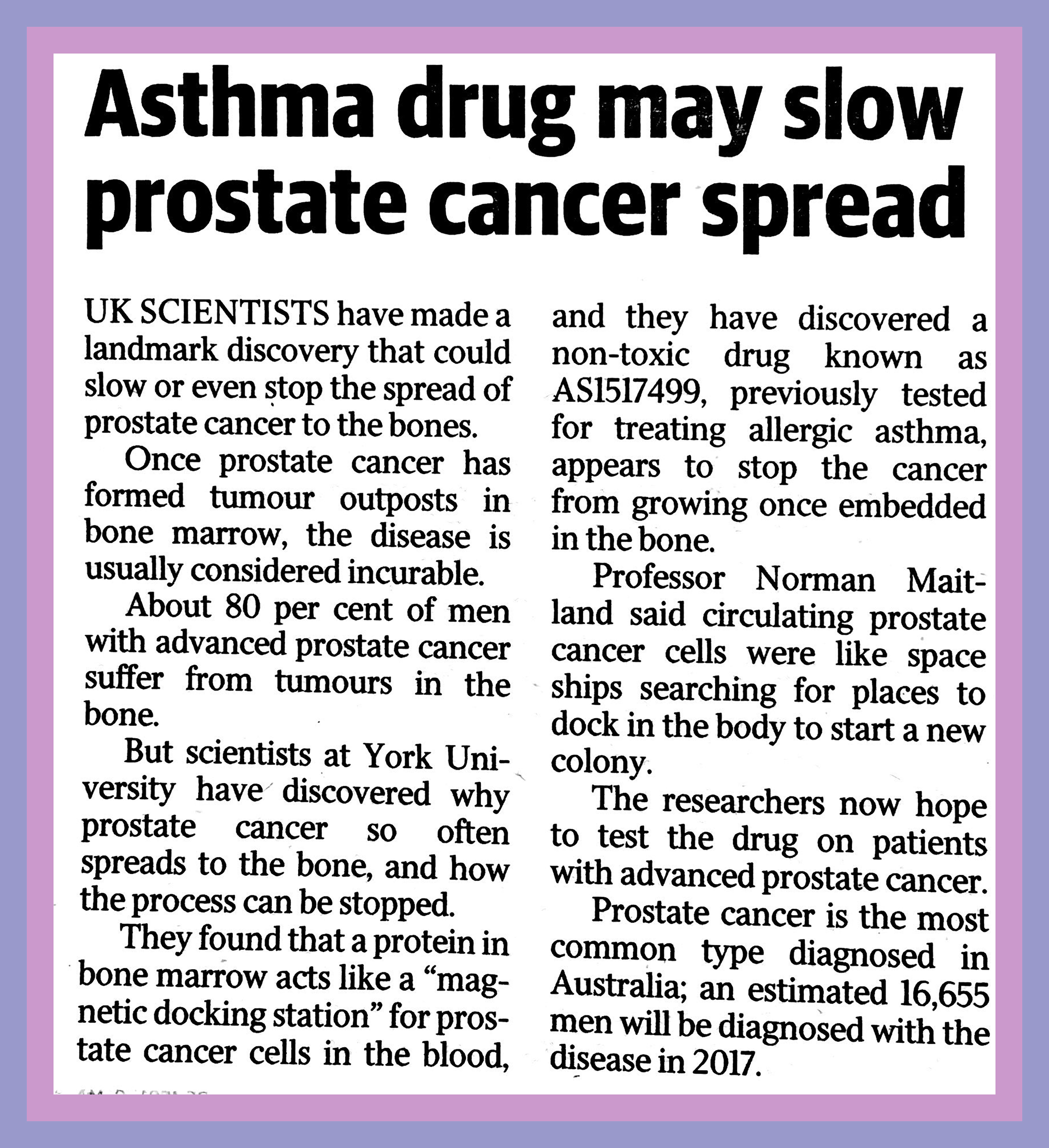 Asthma drug may slow prostate cancer spread