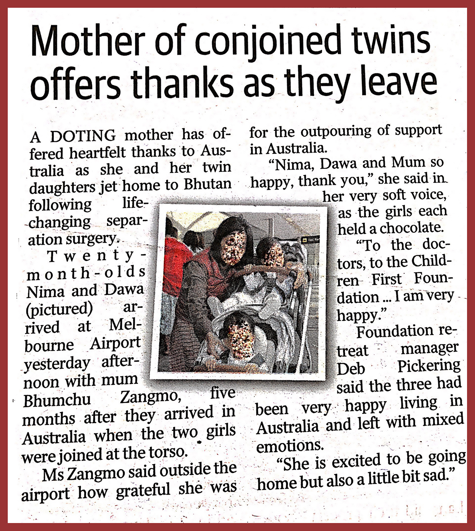 One Response to Mother of conjoined twins offer thanks as they leave