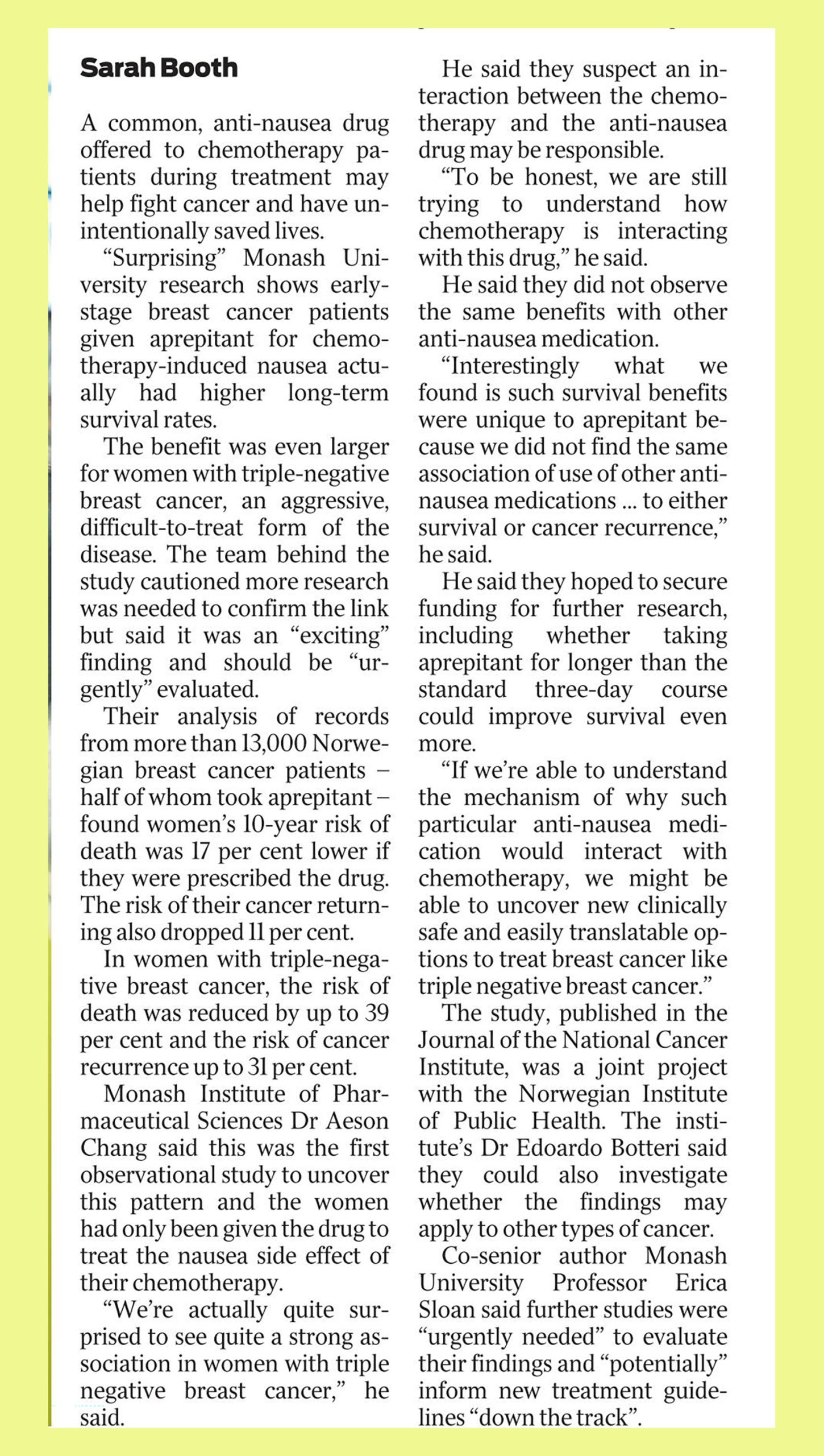 Surprise new role for drug Breast cancer patient hope